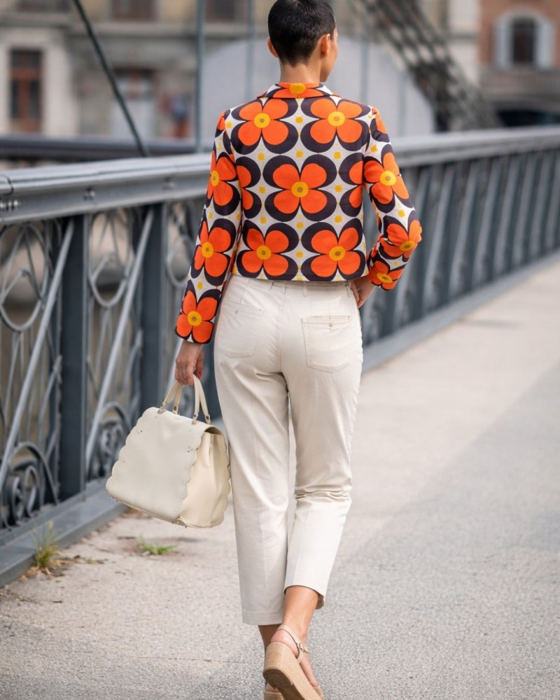 Le Clem blouson de la marque Hippocampe est une pièce vibrante au style rétro assumé. Son imprimé floral graphique aux grandes fleurs orange sur fond contrasté apporte une touche audacieuse et pleine de personnalité à votre silhouette.