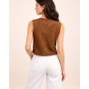 Apportez une touche bohème et élégante à votre tenue avec la veste Dakota. Cette pièce sans manches au style affirmé séduit par son effet suédine et ses finitions travaillées, parfaites pour sublimer vos looks de saison.