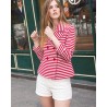 Disponible en version rayée bleu marine ou rouge, la Marin veste se marie parfaitement avec un jean pour un look casual, ou avec un short ou une jupe pour une allure plus estivale et sophistiquée.